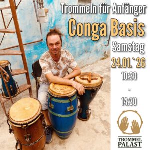 Die Möglichkeit zum Einstieg in die Welt dieser vielseitigen Handtrommel darf man nicht verpassen! Infos zu unseren wöchentlichen Conga-Gruppen findet ihr hier auf unserer HP unter Fachbereiche und fortlaufende Gruppen Conga!